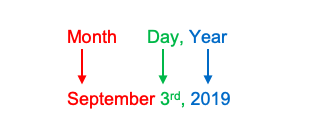 اكتب تاريخ كتابة الرسالة في الجزء العلوي الأيسر من الصفحة، مع الحرص على البدء بالشهر، ثم اليوم وأخيرًا السنة. كما يلي: